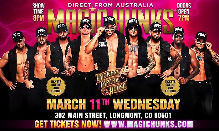 Australia’s Ultimate Girls’ Night Out is coming to LONGMONT, CO! 🔥 Get ready for the Magic Hunks Australia WORLD TOUR — hitting the iconic **Dickens Opera House for ONE NIGHT ONLY** on Wednesday, March 11th This is the best girls’ night out in Longmont, featuring a high-energy, jaw-dropping live show packed with heart-racing performances, electrifying...